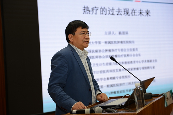 德國科隆醫療中心創始人兼總監的羅伯特戈特博士帶來的“戰勝癌癥-戈特模式”主題講座。“戈特模式”旨在利用恢復人體免疫系統,消滅和清除體內癌細胞才是徹底治愈癌癥的根本方法。戈特博士指出,德國科隆醫療中心經過“戈特模式”治療的晚期腫瘤患者的五年生存率可提高至60%。楊道科教授分享了“腫瘤熱療的昨天、今天和明天”主題報告。楊教授用翔實的數據勾勒出腫瘤治療的發展史以及現在的局限,并描述了熱療用于臨床治療疾病及腫瘤的歷史及進展,重點強調了熱療作為放化療的輔助治療的優勢,展望了腫瘤熱療的未來。張陽教授帶來“熱治療在胰腺癌治療中的基礎與臨床”主題報告,報告指出深部熱療對胰腺癌腫瘤細胞具有直接的殺傷作用,同時對機體免疫系統的影響也較為復雜、廣泛,主要表現在對腫瘤微環境、免疫細胞及熱休克蛋白等有一定的作用。劉祥忠教授以“肝癌免疫治療臨床研究進展”為題進行演講,劉教授指出肝癌的發生、發展、復發和轉移與機體免疫系統有密切的關系,在早期即有用免疫方法治療肝癌的經驗,免疫治療可以誘導特異性腫瘤免疫應答,取得治療肝癌、減少肝癌復發和轉移的效果。